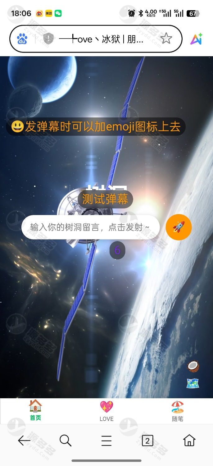 这款PHP朋友圈系统集成了恋爱日记、随笔分享与树洞互动等多种功能,界面简洁清新,功能完整实用。用户可自由发布文字、图片或日记内容,打造属于自己的小型社交空间。系统已优化随笔功能,任何访客均可添加随笔内容,增强互动体验。新增的树洞弹幕功能让匿名留言更具趣味性,入口位于页面右下角。