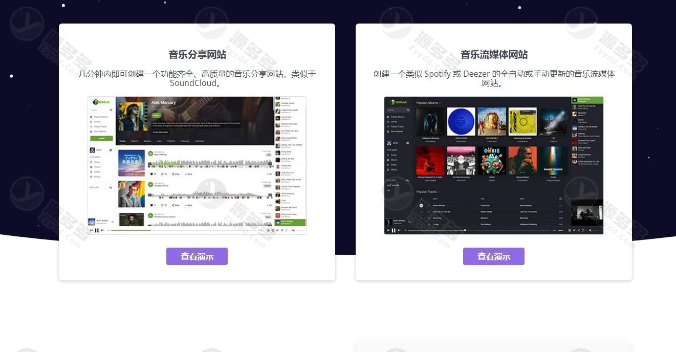 BeMusic Free 是一套功能完善的音乐分享与流媒体网站系统源码,适用于搭建音乐展示、在线播放及用户互动类平台,可用于构建类似于 SoundCloud、MixCloud、Spotify 等模式的音乐网站。程序整体架构成熟,界面风格现代,支持多终端自适应访问,具备良好的用户体验。源码内已包含中文语言文件,翻译内容主要由自动化方式生成,个别词汇存在语义差异情况,可根据实际需求自行进行批量调整与优化。系统在 PHP 8.2、Nginx、MySQL 8.0 及 fileinfo 扩展环境下测试运行正常,需配置伪静态规则以确保功能完整。平台内置用户与艺术家体系,支持播放列表、音乐库、关注系统、搜索与分享等常用功能,同时提供深色模式、外观编辑、菜单管理、内容管理、SEO 编辑器、统计分析及多主页模板等扩展模块,并支持角色权限管理、SaaS 模式与可编辑落地页,整体功能丰富,适合用于音乐类网站的学习研究或二次开发。