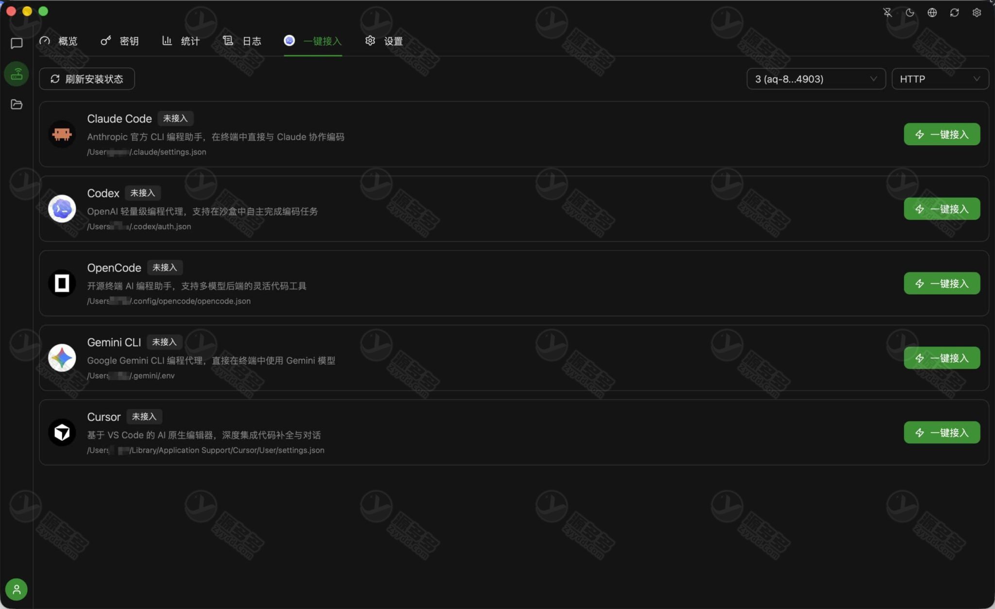API 网关功能方面,AQBot内置本地 API 服务,可兼容 OpenAI、Claude、Gemini 接口,可作为任何兼容客户端的后端。支持 API Key 管理、使用量统计、模型白名单与速率限制配置,以及 SSL/TLS 自签名证书生成。请求日志完整记录所有 API 交互,内置配置模板方便快速集成流行工具。